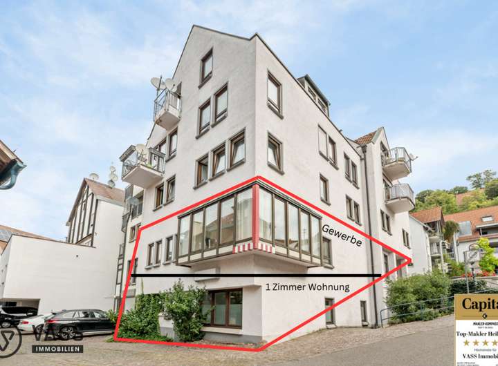 Zum Verkauf steht ein attraktives Immobilienpaket in Beilstein, bestehend aus einer großzügigen Gewerbefläche von ca. 92 m² sowie einer hellen und gut geschnittenen 1 Zimmer Wohnung mit ca. 62 m² Wohnfläche. Die Wohnung war ehemals als Gewerbefläche genutzt, wurde jedoch durch eine offizielle Nutzungsänderung in eine Wohnfläche umgewandelt. Sie verfügt über eine Über-Küche, ein Bad und ein großes Wohn-/Ess-/Schlafzimmer. Beide Einheiten sind zuverlässig vermietet und erwirtschaften derzeit eine monatliche Kaltmiete von rund 1.390 €.