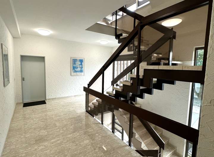 Das freistehende Mehrfamilienhaus steht auf einem großzügigen ca. 747 m² großen Grundstück in einem urbanen Gebiet in beliebter Lage von Egelsbach. Es wurde 1981 als Bürohaus gebaut, im Jahr 1992 gesamtsaniert und um ein Dachgeschoss mit Gauben aufgestockt. In diesem Zuge wurde es vollständig zu Wohnzwecken umgebaut und bietet nun jeweils 3 Mietwohnungen im Erdgeschoss und im Obergeschoss sowie 2 exklusive Dachgeschoss-Wohnungen. Die gepflegte Liegenschaft ist ruhig und dennoch zentral gelegen und es bietet sich auf kurzen Wegen der Zugang zu zahlreichen Einkaufsmöglichkeiten, S-Bahnhof, Wiesen und Wäldern.Auf dem Grundstück der Liegenschaft befinden sich neben dem Wohngebäude vier Garagen und sechs gepflasterte KFZ-Stellplätze sowie ein pflegeleichter gemeinschaftlich genutzter Garten mit Rasen-/ Pflasterfläche, der für alle Bewohner nutzbar ist. Der Gartenbereich ist durch eine Mauer mit Gartentoren eingefriedet und es steht den Bewohnern ein umzäunter Platz für die Mülltonnen zur Verfügung. Das helle und großzügige Treppenhaus des Mehrfamilienhauses ist mit einheitlichem, pflegeleichtem Marmor ausgelegt und mit Marmortreppenstufen ausgestattet.