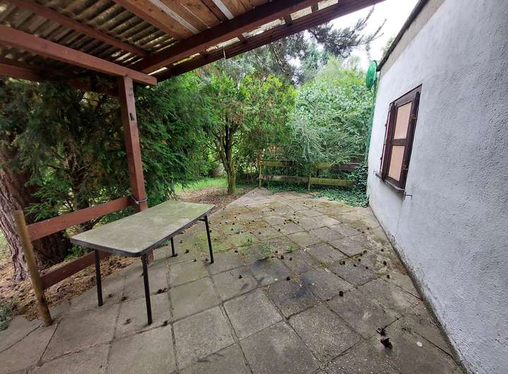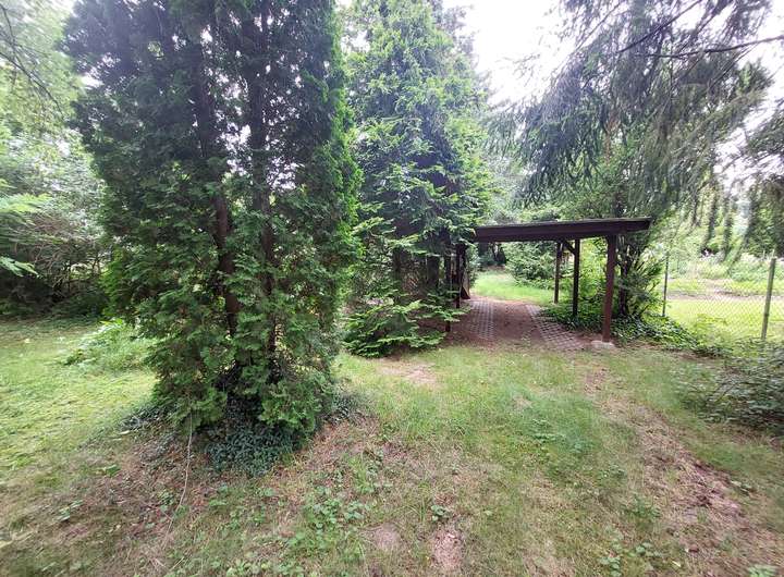 - das Grundstück ist 990 m² groß, Stromanschluss ist vorhanden, es gibt ein Carport auf dem befahrbaren Grundstück