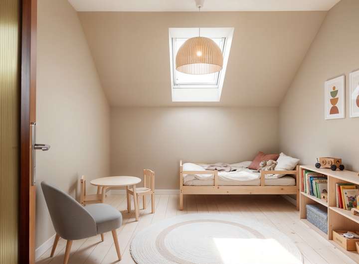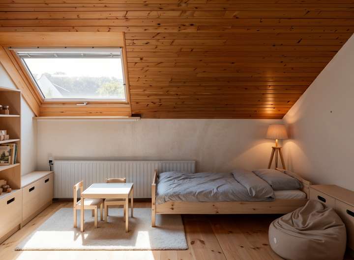 Im Erdgeschoss befindet sich ein Eingangsbereich mit anschließendem Flur, zwei kleinere Zimmer, ein Bad mit Dusche und ein Gäste-WC. Der große Wohnbereich ist mit einem abgetrennten Essbereich und Ausgang in den Garten ausgestattet. Das Dachgeschoss verfügt über 2 Zimmer und weitere Ausbaureserve. Das Haus hat einen trockenen Teilkeller indem die Heizungstherme und 3 Räumen Abstellräume verbaut sind.