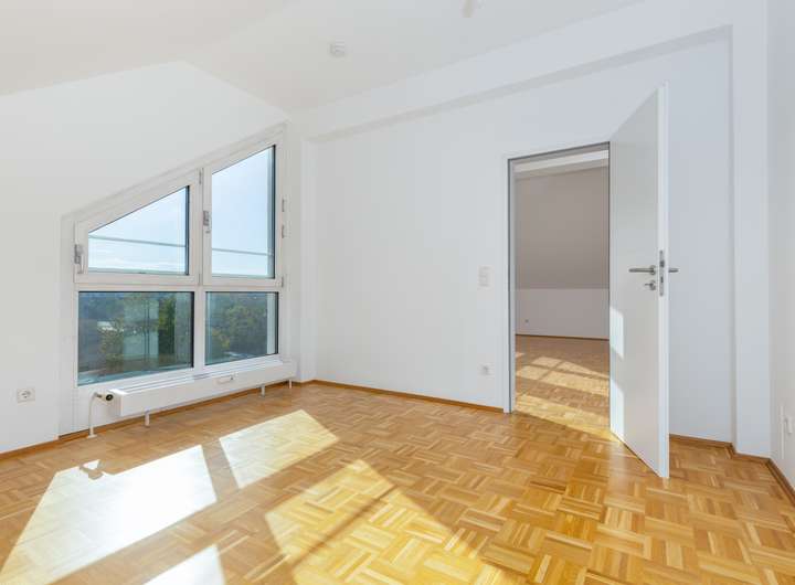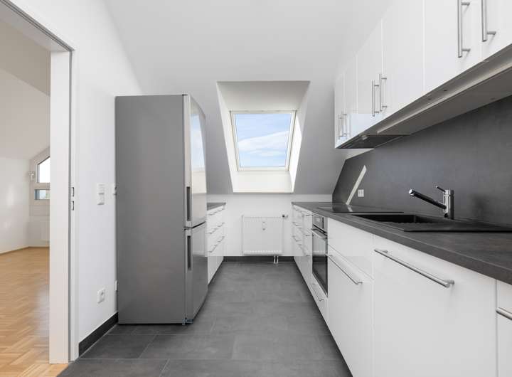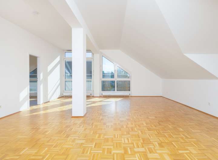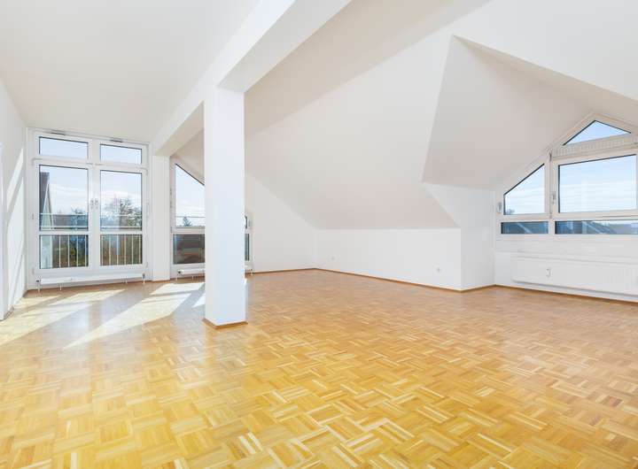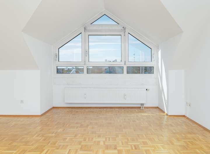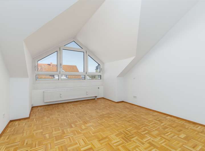Die lichtdurchflutete Dachgeschosswohnung ist mit Parkett ausgestattet.
