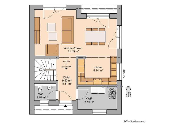 + Massivhaus als Ausbauhaus im Sinne der Bau- und Ausstattungsbeschreibung "Paulo"