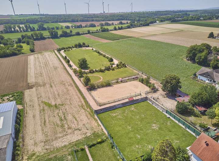 Die Immobilie umfasst rund 16.880 m² Fläche im Eigentum, wovon ein größter Teil die Koppelfläche ausmacht.