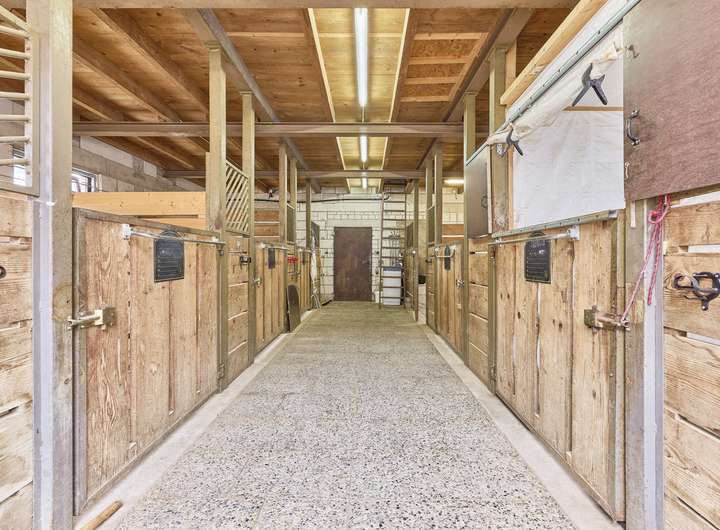 Das Mehrfamilienhaus beherbergt 5 genehmigte Wohneinheiten auf rund 400 m² Wohnfläche. Die große Hauptwohnung im Erdgeschoss verfügt über einen Garten, die Wohnungen im Obergeschoss haben Balkone mit freier Sicht auf den Pferdebetrieb.