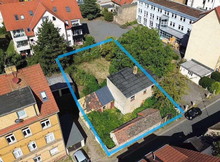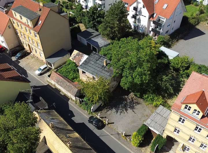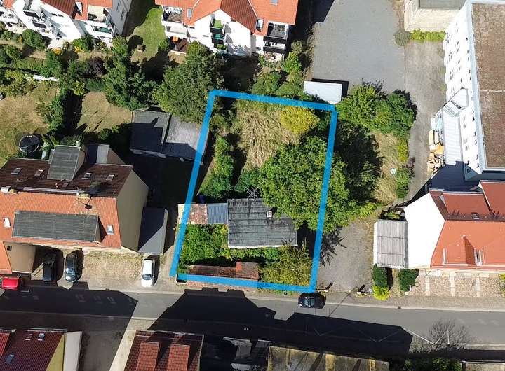 Das Gesamtareal umfasst 457 m², aufgeteilt auf drei Flurstücke. Bebaut ist es derzeit mit einem abbruchreifen Bestandsgebäude (Erdgeschoss + Obergeschoss, teilweise unterkellert) sowie kleineren Nebengebäuden. Hinter dem Haus öffnet sich ein großzügiger Garten, der nicht nur viel Raum für individuelle Gestaltungsideen bietet, sondern auch für eine ruhige und geschützte Wohnatmosphäre sorgt. Besonders im hinteren Grundstücksbereich genießt man eine sehr angenehme, fast idyllische Ruhe – und das mitten in der Stadt.