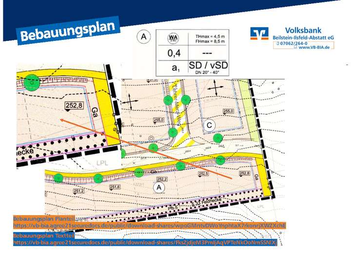 Unter ergänzende Links erhalten Sie Zugriff auf den aktuellen Bebauungsplan