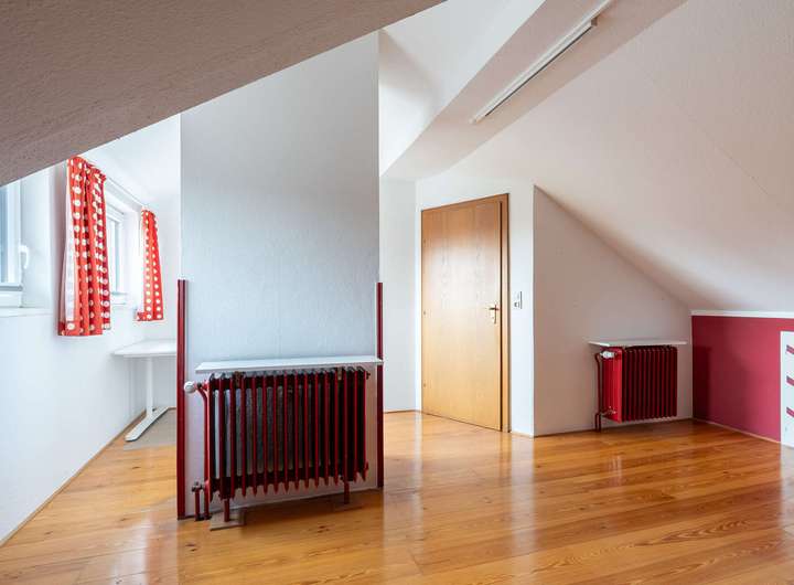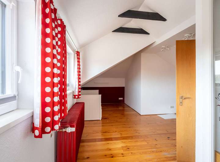 Das Dachgeschoss beherbergt zwei helle Kinderzimmer, die vielfältig genutzt werden können. Der Keller bietet zudem reichlich Abstell- und Lagermöglichkeiten für Wohn- und Gewerbenutzung.