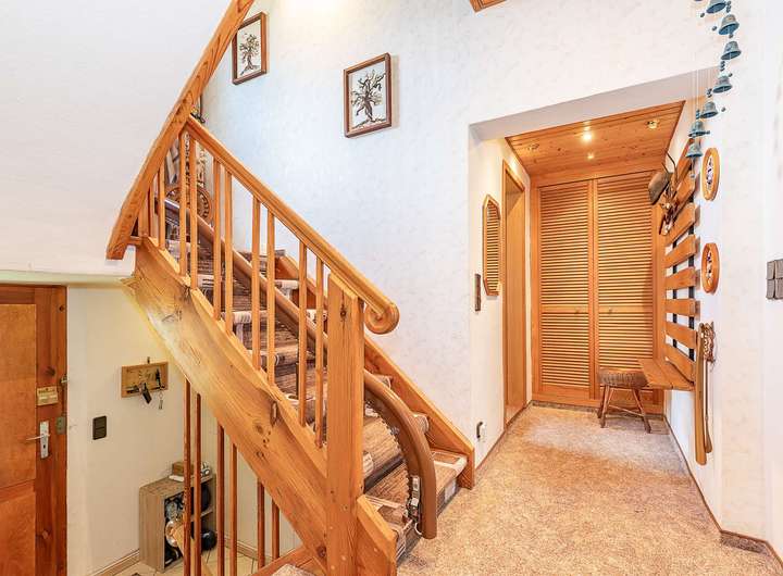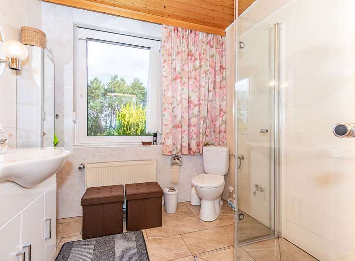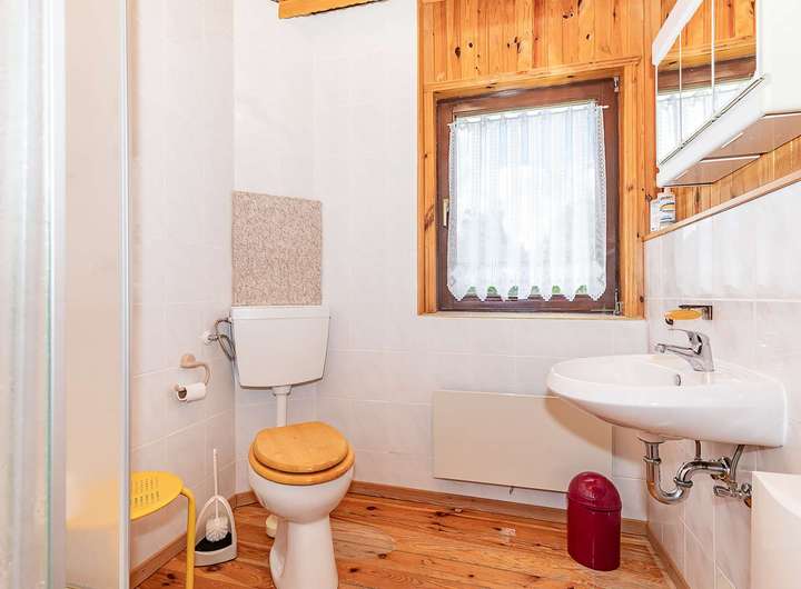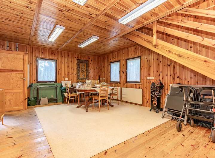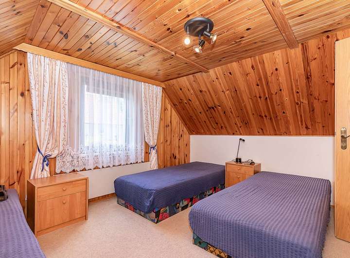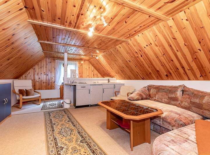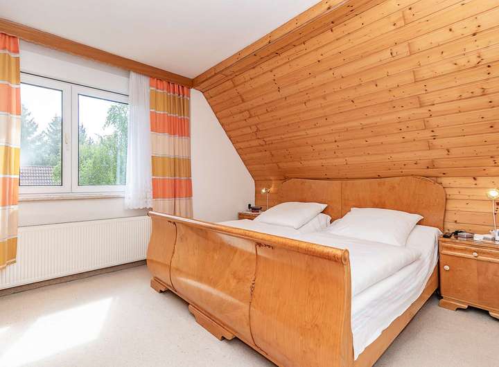 Das zweite Haus wurde 1994 in Holzständerbauweise errichtet und ergänzt das Angebot um weitere Nutzungsmöglichkeiten. Im Erdgeschoss stehen ca. 54 m² Wohnfläche mit zwei Zimmern und einem Bad zur Verfügung. Das Dachgeschoss verfügt über zwei zusätzliche Zimmer sowie eine offene Küchenzeile (ca. 33 m²). Aufgrund der niedrigeren Deckenhöhe gilt diese Fläche als Nutzfläche, bietet aber dennoch viel Potenzial für Gäste, Kinder oder auch für die Verwirklichung eigener Projekte.