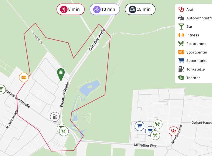 Für Freizeit und Erholung bietet die Umgebung vielfältige Möglichkeiten – von Sporteinrichtungen bis hin zu gemütlichen Cafés in schöner Lage. Auch der internationale Flughafen ist in rund 20 Minuten mit dem Auto erreichbar, was die Lage ebenso für Vielreisende interessant macht.