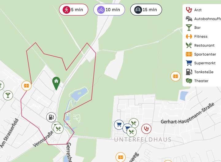 Für Freizeit und Erholung bietet die Umgebung vielfältige Möglichkeiten – von Sporteinrichtungen bis hin zu gemütlichen Cafés in schöner Lage. Auch der internationale Flughafen ist in rund 20 Minuten mit dem Auto erreichbar, was die Lage ebenso für Vielreisende interessant macht.