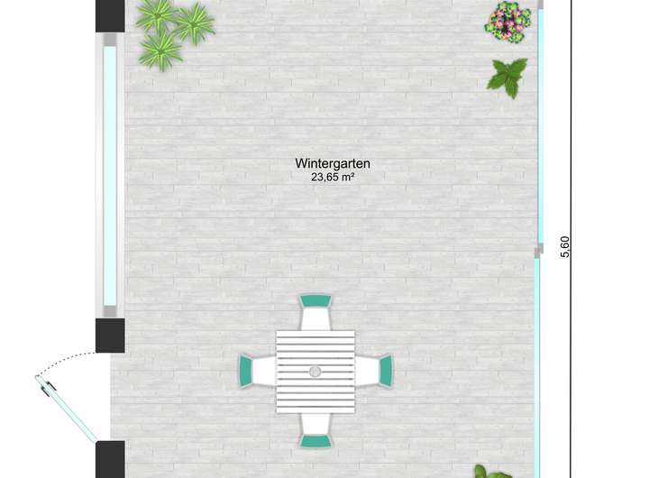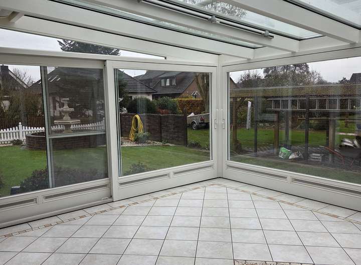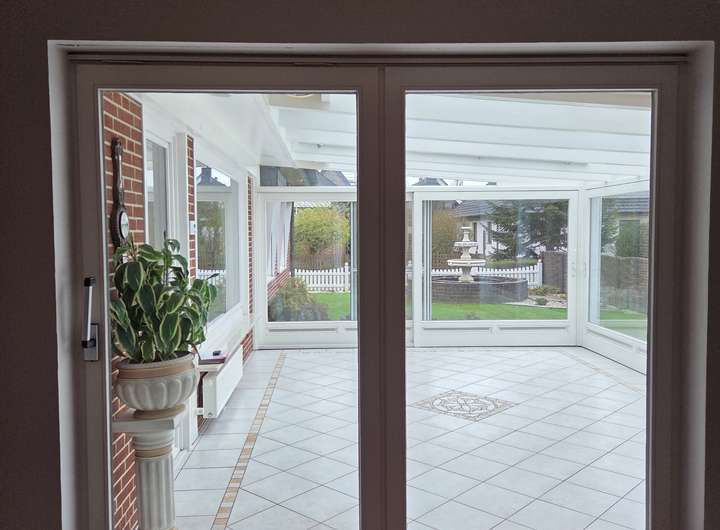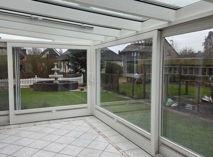 Wintergarten, beheizbar, elektrische Dachbeschattung und Belüftung