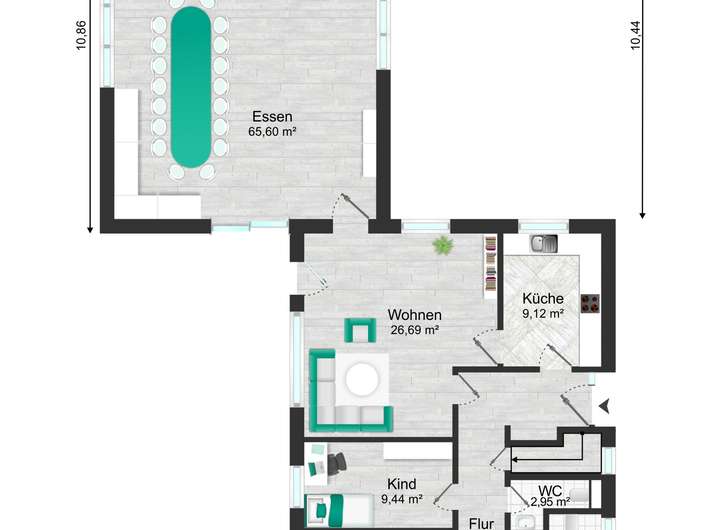 Wohnfläche inkl. Putzabzug 163,16 qm