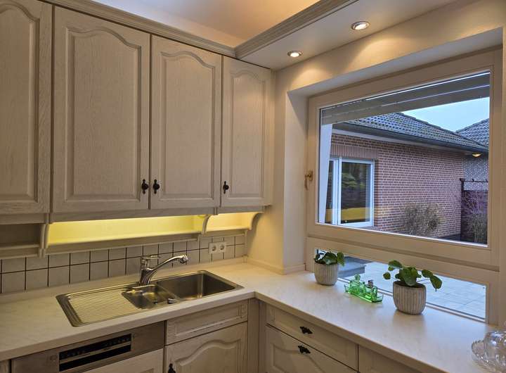 Dieser charmante Bungalow aus dem Jahr 1968 besticht durch seine professionelle Bauweise und wurde 2002 auf 176 qm erweitert. Das Krüppelwalmdach verleiht dem Gebäude eine besondere Optik. Das barrierefreie Haus verfügt über ein Schlafzimmer, zwei Badezimmer, eine Gas-Heizung und eine Terrasse. Mit insgesamt vier Zimmern, einem Keller und der Garage bietet die Immobilie genügend Platz für eine Familie.