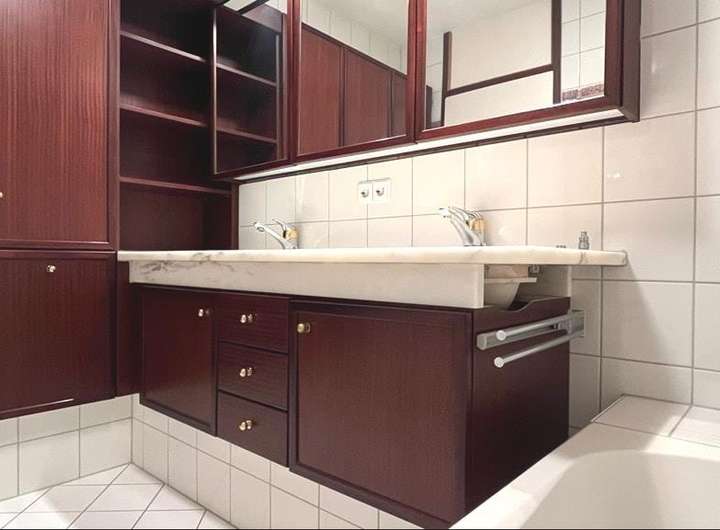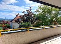 Besonders angenehm sind die beiden großen Balkone (Süd- und Ostseite). Der Blick über gepflegte Gärten mit altem Baumbestand inkl. eines Mammutbaums schafft ein natürliches, entspannendes Wohngefühl.