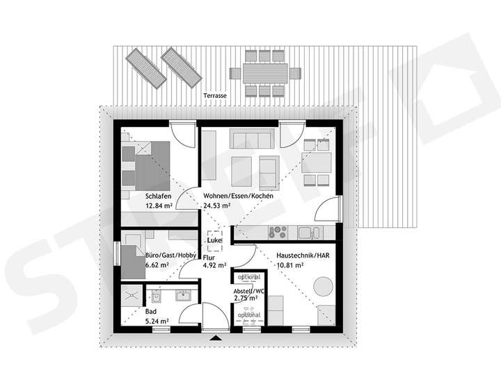 ein gemütliches Schlafzimmer, ein Gästezimmer bzw. Büro und ein stilvolles Badezimmer. Mit der Ausbaustufe 3 - FastFertigPlus, die eine hochwertige Sanitär-Grundausstattung beinhaltet, können Sie aktiv am Bau Ihres Hauses mitwirken und gleichzeitig auf die Expertise eines Fachbetriebs in den wichtigen technischen Gewerken vertrauen. Selbstverständlich erstellen wir Ihr Haus gegen Mehrpreis auch schlüsselfertig. Nehmen Sie Kontakt auf mit Ihrem Bauberater