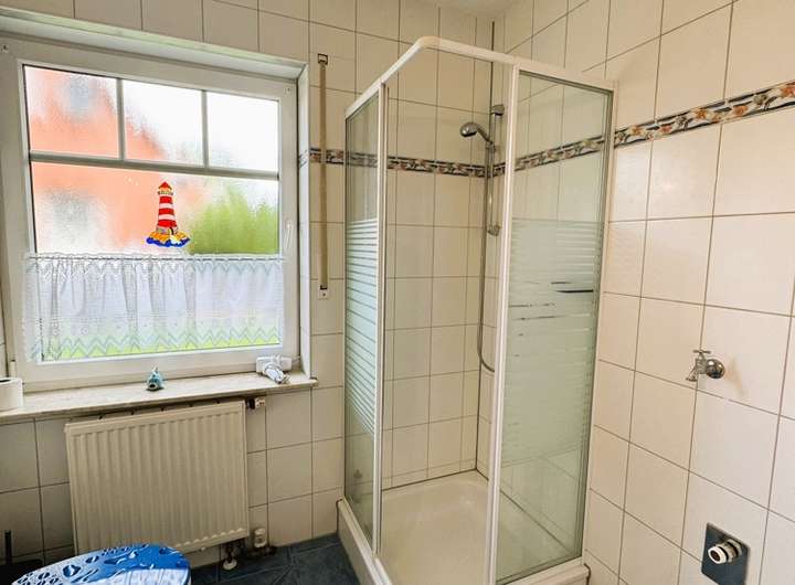 Bad mit Dusche und Waschmaschinenstellplatz