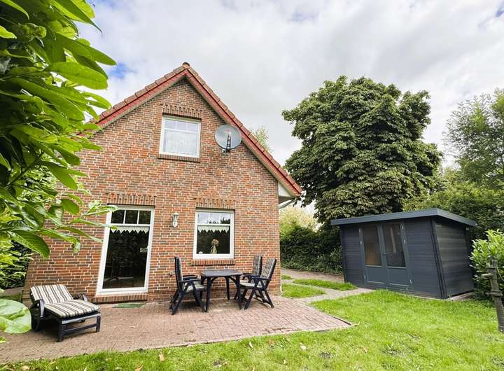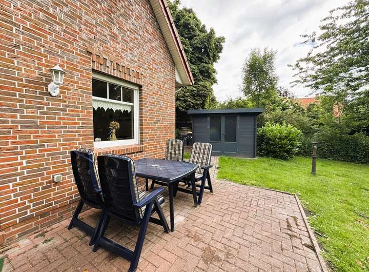 Der Außenbereich punktet mit einem PKW-Stellplatz, 2 Sonnenterrassen, hochwertigem Gartenhaus aus WPC und einem sehr idyllischen Garten in schöner Warftenlage von Uttum. Das Eigentumsgrundstück bemisst rund 515 m².