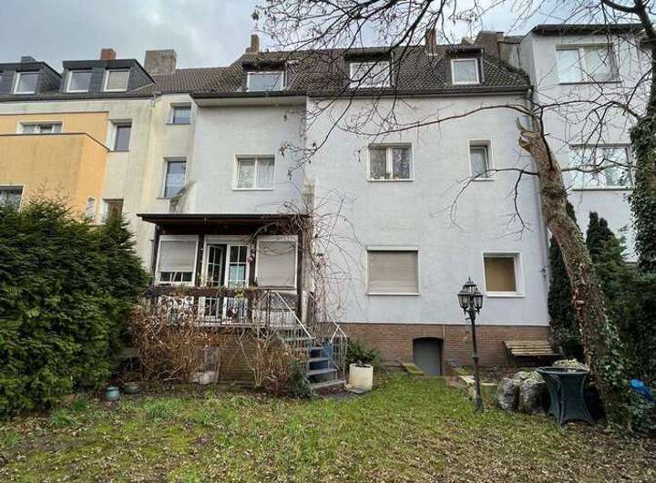 Die Wohnung im Erdgeschoss des Hauses verfügt über eine Terasse, die durch eine Treppe in den Garten führt. Des Weiteren ist der Hof des Objektes über den Keller erreichbar.