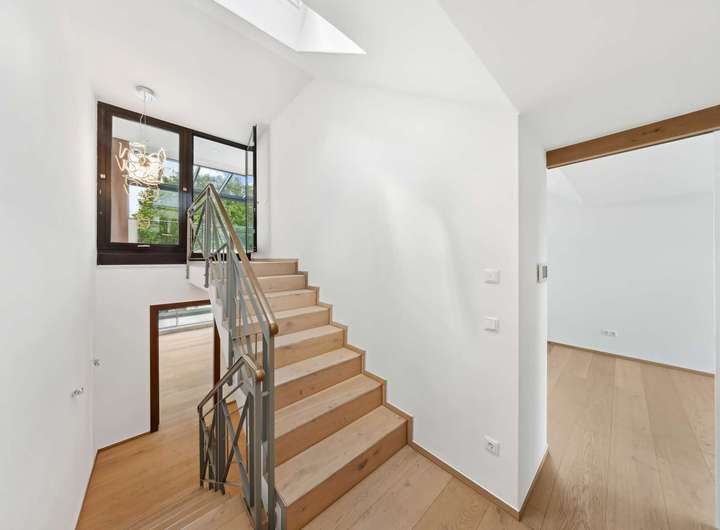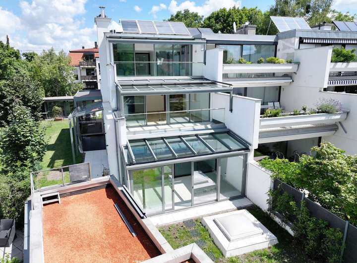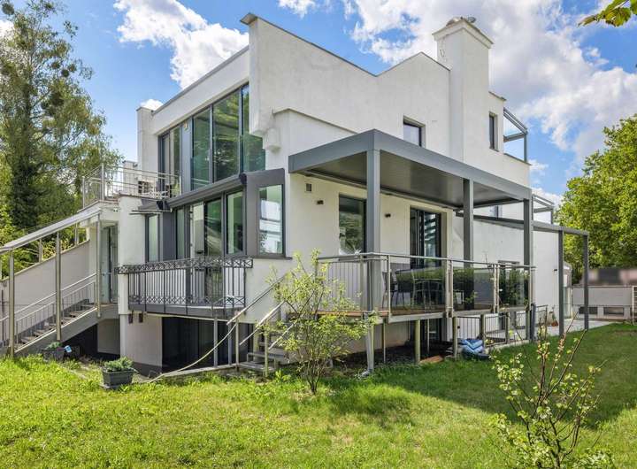 Die repräsentative Architektur auf mehreren Ebenen in moderner Split-Level-Bauweise schafft ein außergewöhnliches Wohnerlebnis. Eine großzügige Terrasse und Balkone auf jeder Wohnebene, ein offener Grundriss sowie eine exklusive Ausstattung garantieren höchsten Wohnkomfort.