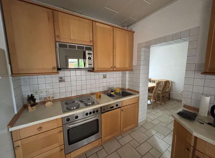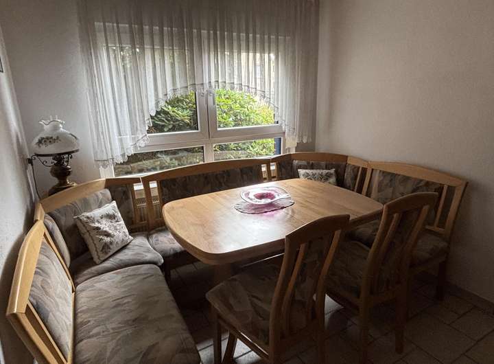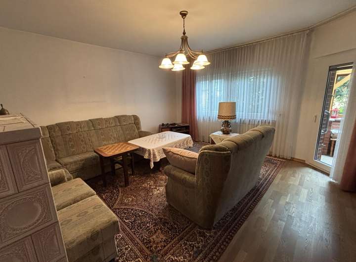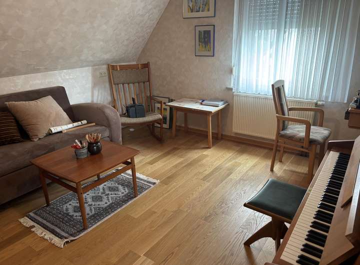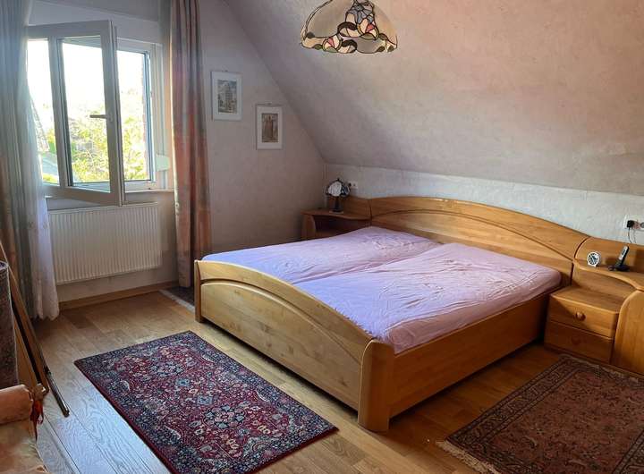 Die Wohnfläche von ca. 122 m² verteilt sich auf Erdgeschoß und ausgebautem Dachgeschoß mit insgesamt sechs Zimmern, darunter vier Schlafzimmer, ein gemütliches Wohnzimmer mit Kachelofen und einem kleinen angebauten Wintergarten.