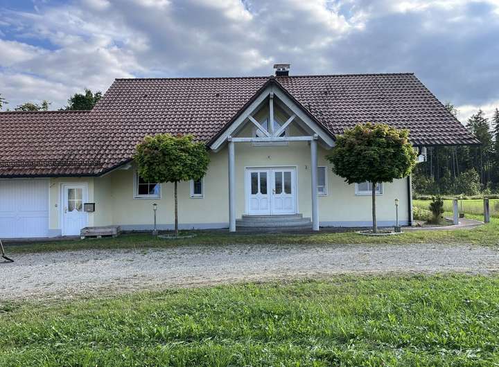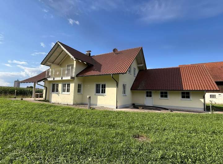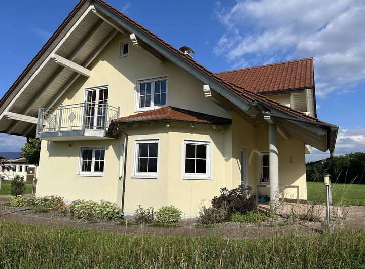 Helles Einfamilienhaus mit hochwertiger Ausstattung Dieses lichtdurchflutete Einfamilienhaus begeistert durch seine ruhige Lage inmitten der Natur und bietet gleichzeitig ein hohes Maß an Wohnkomfort. Großzügig geschnittene Räume, eine hochwertige Ausstattung sowie viel Außenfläche schaffen ein ideales Zuhause für Familien oder Paare mit Platzbedarf. Die moderne Einbauküche ist bereits im Mietpreis enthalten und bildet mit dem angrenzenden Ess- und Wohnbereich das Herzstück des Erdgeschosses. Zudem stehen hier zwei weitere Zimmer sowie ein Gäste-WC zur Verfügung. Im Obergeschoss befinden sich vier weitere Zimmer , eines davon mit Balkonzugang, sowie ein helles Tageslichtbad mit Badewanne und Dusche. Ein zusätzliches Bad im Untergeschoss sorgt für extra Komfort. Besonders praktisch: Die Doppelgarage mit direktem Hauszugang , zwei helle Kellerräume sowie der Dachspitz, der sich hervorragend als Stauraum eignet. Für entspannte Stunden im Freien laden zwei Terrassen mit Ost- und Westausrichtung ein – perfekt für Sonne zu jeder Tageszeit. Der großzügige Garten bietet viel Raum für individuelle Gestaltung und Freizeitaktivitäten.