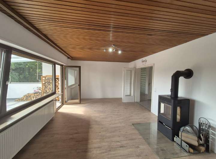 Das Einfamilienhaus steht seit 1–2 Monaten leer und ist sofort bezugsbereit. Im großzügigen Wohnzimmer sorgt ein gemütlicher Holzofen für wohlige Wärme und eine angenehme Atmosphäre.
