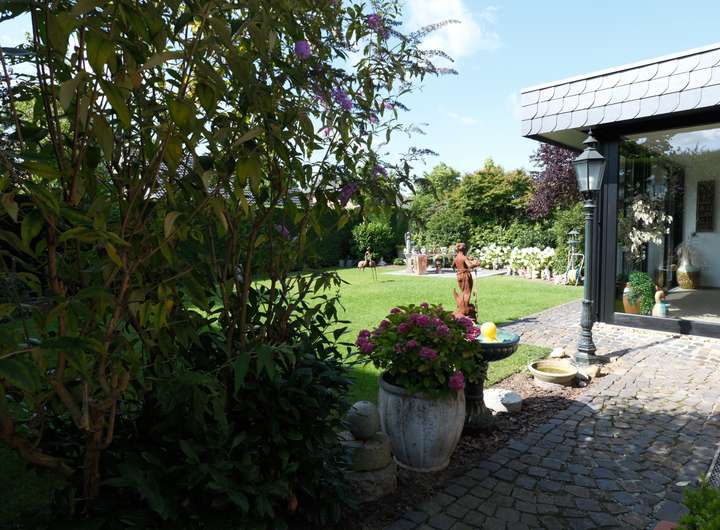 Der schön angelegte Garten liegt sowohl vor als hinterm Haus, ist kaum einzusehen und bietet viel Privatsphäre.