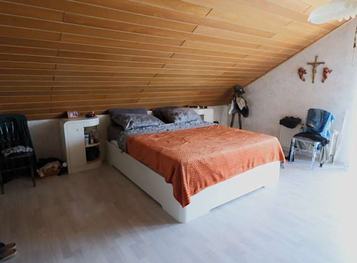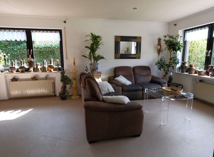 Das massiv ausgeführte freistehende und vollunterkellerte Haus mit Doppelgarage wurde 1984 gebaut. Es liegt in einer ruhigen Wohnumgebung. Der Garten ist sowohl vor als hinterm Haus und bietet viel Ruhe und Privatsphäre. Links, vor der Garage ist viel Platz für Fahrzeuge. In 2016 wurde das Wohnzimmer vergrößert, in 2017 wurde das Dach neu eingedeckt.