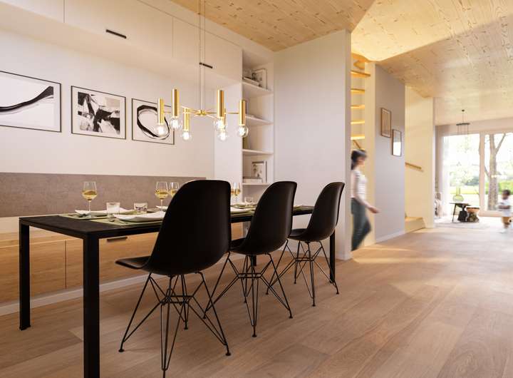 Willkommen im „Swing“ – Ihr neues Zuhause oder Ihre sichere Kapitalanlage. Dieses moderne Reihenendhaus vereint zeitgemäße Architektur, durchdachte Grundrisse und nachhaltige Technik zu einem Wohnkonzept mit Zukunft. Mit fünf vielseitig nutzbaren Zimmern haben Sie die Freiheit, Ihre individuellen Wohnideen umzusetzen: ob Kinderzimmer, Homeoffice oder Fitnessbereich – das „Swing“ bietet Flexibilität für jede Lebensphase. Ein architektonisches Highlight ist die stilvolle Galerie mit rund 3,40 m Deckenhöhe, die direkt zur Dachterrasse führt. Großzügige Fensterflächen lassen viel Tageslicht herein und schaffen fließende Übergänge ins Freie – für ein helles, offenes und einladendes Wohngefühl. Besondere Akzente setzen die Außenbereiche: Der Garten mit Westausrichtung eignet sich ideal für entspannte Nachmittage und Abende, während die Dachterrasse mit Ostausrichtung den perfekten Rahmen für ein Frühstück im Freien oder einen ruhigen Start in den Tag bietet. Nachhaltigkeit und Energieeffizienz stehen ebenfalls im Mittelpunkt: Mit Photovoltaikanlage, Wärmepumpe und dem hohen KfW40-NH QNG-Standard (förderfähig) ist das „Swing“ bestens auf die Zukunft vorbereitet. Zwei PKW-Stellplätze direkt vor dem Haus, davon einer mit Infrastruktur für E-Mobilität, sorgen für zusätzlichen Komfort. Auch im Inneren überzeugt das Haus mit einem hochwertigen Designbad inklusive Dusche und Badewanne, elektrischen Rollläden, Fußbodenheizung, moderner Wohnraumlüftung und einem Gäste-WC im Erdgeschoss. Für Eigennutzer bedeutet das ein Zuhause, das Komfort, Flexibilität und Behaglichkeit verbindet. Für Kapitalanleger bietet sich eine wertbeständige Immobilie mit attraktiven Förderungen und steuerlichen Vorteilen. Das „Swing“ – ein Reihenendhaus, das Wohnqualität und Investitionssicherheit gleichermaßen vereint.