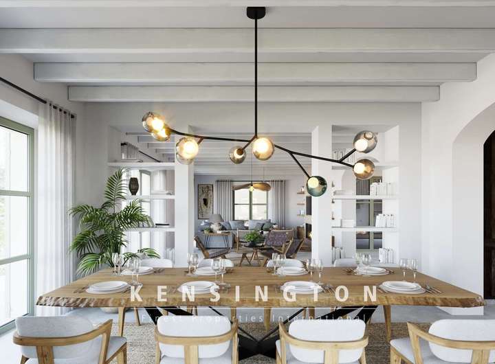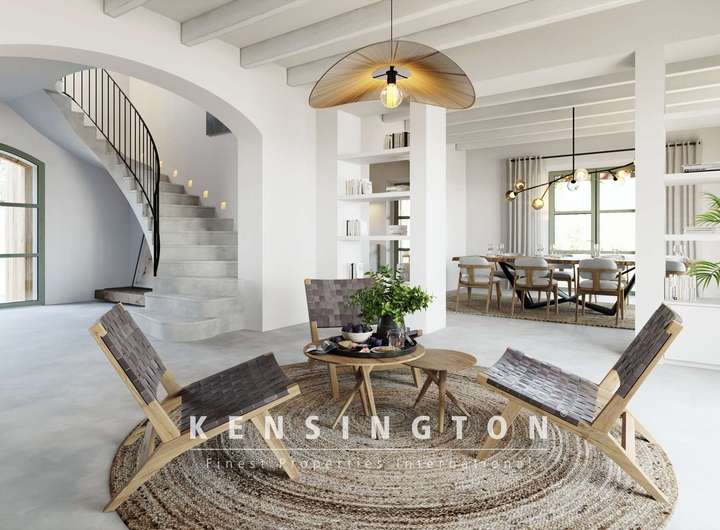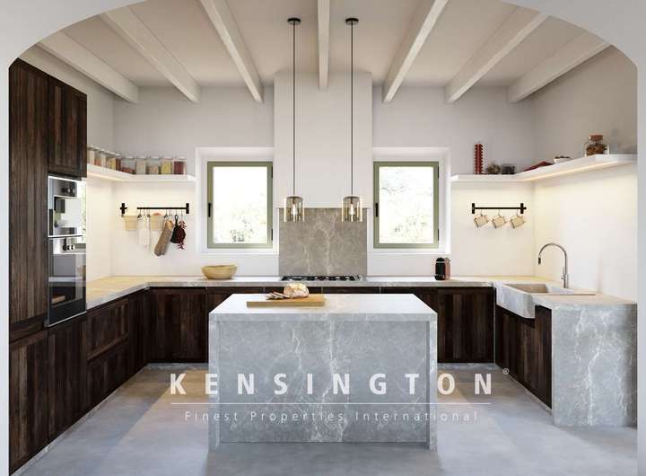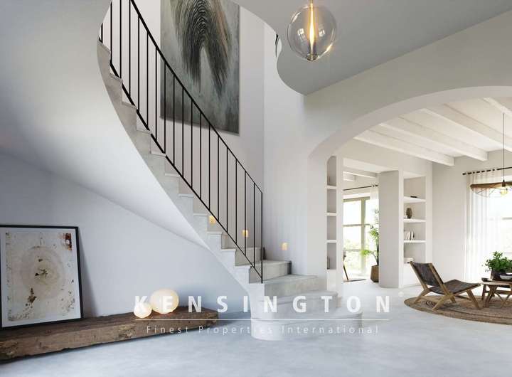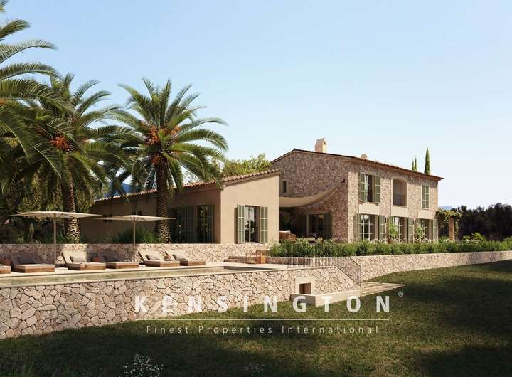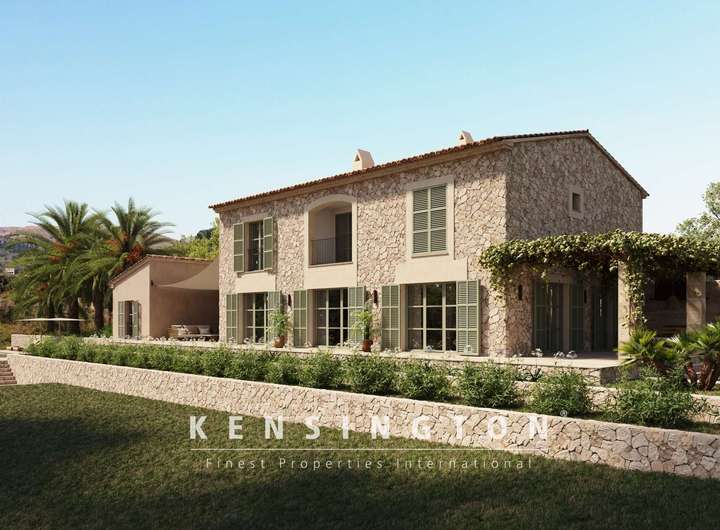 Von Aussen ist das Haus dem inseltypischen Ideal einer mallorquinischen Finca nachempfunden: klare Linien und eine warme Natursteinfassade bestimmen den ersten Eindruck. Traditionelle Persianer, verschiedene Terrassen und der 35 qm grosse Pool vervollständigen das Aussenbild des Anwesens. Das Innendesign ist ebenso klar und gelungen: offene Raumgestaltung, modernes Design und inseltypische Materialien prägen das moderne und stilvolle Wohnambiente.