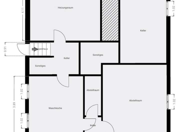 Das Haus ist voll unterkellert – mit separaten Mieterkellern und einem Waschraum.
