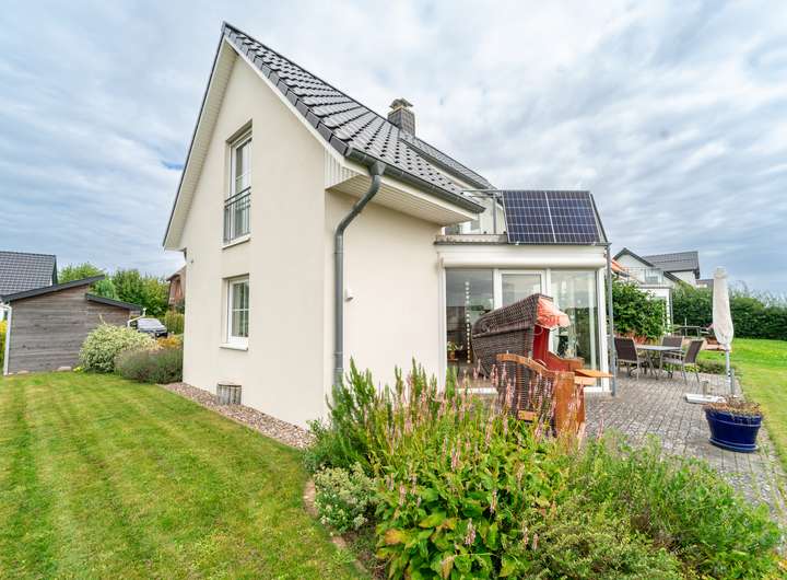 In Barendorf, nur ca. eine halbe Stunde von der Hansestadt Lübeck und etwa 800 m vom feinsandigen Ostseestrand entfernt, erwartet Sie dieses liebevoll gepflegte Ferienhaus, das Urlaubsgefühle das ganze Jahr über verspricht. Das 2005 erbaute Haus steht auf einem 476 m² großen Grundstück in traumhafter Feldrandlage direkt am Naturschutzgebiet „Küstenlandschaft zwischen Priwall und Barendorf“. Hier genießen Sie einen unverbaubaren Blick in die angrenzende Natur und über die Lübecker Bucht. Die ca. 103 m² Wohnfläche verteilen sich auf zwei Ebenen: Im Erdgeschoss schaffen ein großzügiges Wohnzimmer mit Essecke, Kaminofen und angrenzender offener Küche sowie der Zugang zur sonnigen Süd-/Westterrasse eine warme und einladende Atmosphäre. Praktische Ergänzungen wie Vorratsraum, Gäste-WC und Hauswirtschaftsraum sind harmonisch integriert. Im Dachgeschoss laden zwei helle Zimmer mit tiefen Fenstern und französischen Balkonen sowie ein Bad mit Dusche und Handtuchwärmer zum Entspannen ein. Vom Balkon schweift der Blick über das glitzernde Wasser der Ostsee. Der Außenbereich überzeugt mit Gartenhaus, zwei PKW-Stellplätzen und liebevoll angelegtem Garten. Technisch ist das Haus bestens ausgestattet: moderne Gasbrennwerttherme von 2023, elektrische Rollläden, Glasfaseranschluss bis zu 1.000 Mbit/s und ein Balkonkraftwerk. Der Außenanstrich wurde 2018 erneuert. Dieses Haus vereint die Ruhe und Schönheit der Küste mit dem Komfort einer gepflegten Immobilie – ideal als Ferienoase oder als Rückzugsort für alle, die das Meer lieben.
