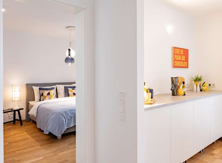 Mit ca. 61 m² Wohnfläche und zwei gut geschnittenen Zimmern erwartet Sie hier moderner Wohnkomfort in absoluter Bestlage. Der durchdachte Grundriss schafft ein offenes Wohngefühl, während das Wohnzimmer und Schlafzimmer direkten Zugang zur großzügigen Terrasse bieten.