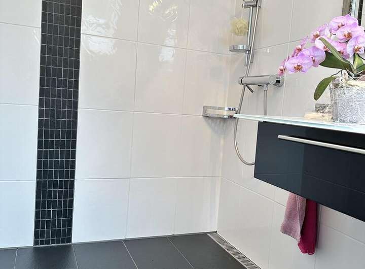 * hochwertige Ausstattung: polierte Feinsteinzeugböden, integrierte Spots, moderne Einbauten