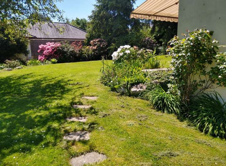 Das ruhige und sonnige gelegen Grundstück hat 1.323 m² und ist idyllisch eingewachsen. Das Grundstück ist bebaut mit einem Zweifamilienhaus aus dem Baujahr 1960. Der Bebauungsplan Nr. 87 für das Baugebiet "Kobelhang Ost" der Stadt Neusäß lässt eine Grundstückteilung unter Auflagen zu.