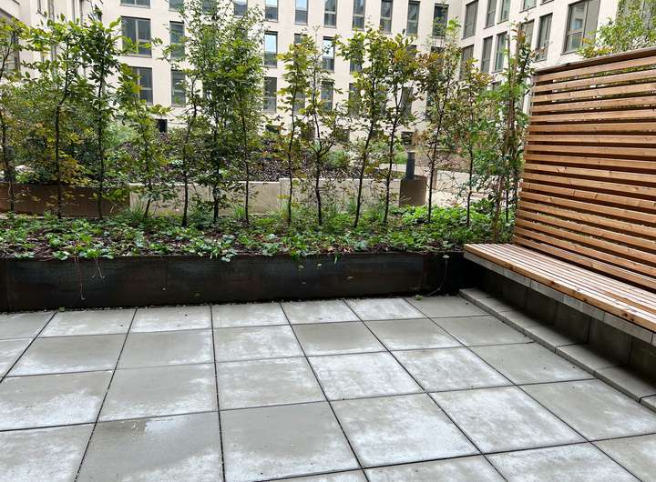 Der gemeinsame, schön gestaltete Innenhof lädt zum Verweilen ein und ist nur durch die Häuser zu erreichen.