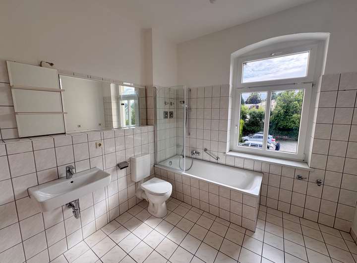 - Tageslichtbad mit Badewanne und Fenster