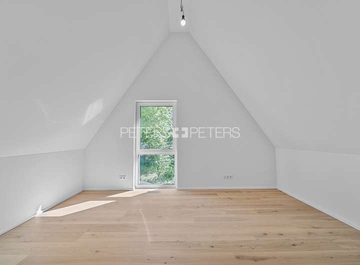 Die klare Formsprache orientiert sich an der typischen Hamburger Deichstraßen-Bauweise mit markantem Spitzdach und hochwertiger Fassade, die sich harmonisch in die Umgebung einfügt. Das Haus wurde besonders gesundheitsbewusst und allergikerfreundlich mit natürlichen, emissionsarmen Materialien gebaut und bietet ein wohngesundes Raumklima, ideal für Familien und anspruchsvolle Bewohner.