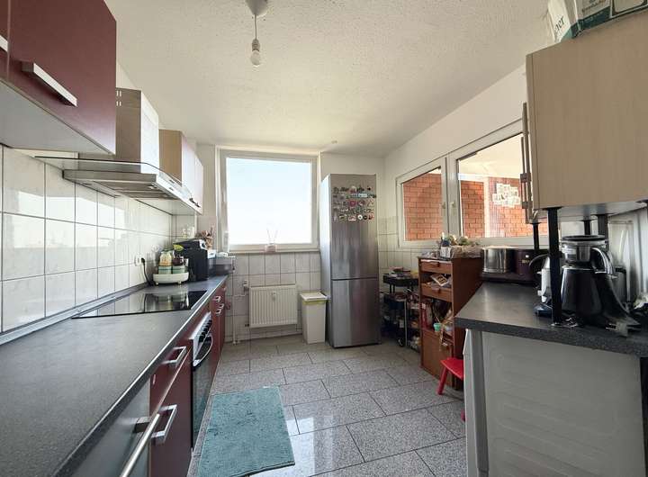 + freundliche und große Küche mit Innenfenster Richtung Wohnzimmer
