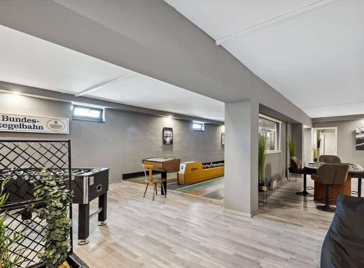 Der Entertainment-Raum dieses Hauses ist der ideale Ort für gesellige Stunden und abwechslungsreiche Freizeitgestaltung. Das absolute Highlight: eine eigene Kegelbahn, die sowohl bei Partys, Famili