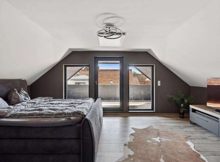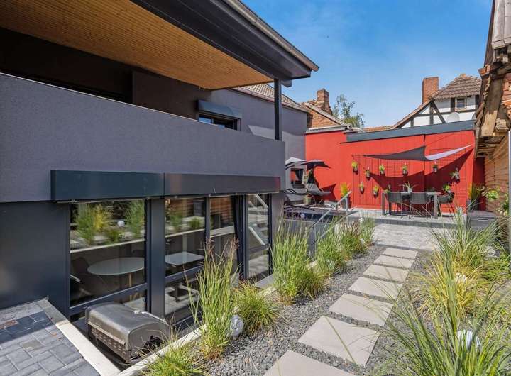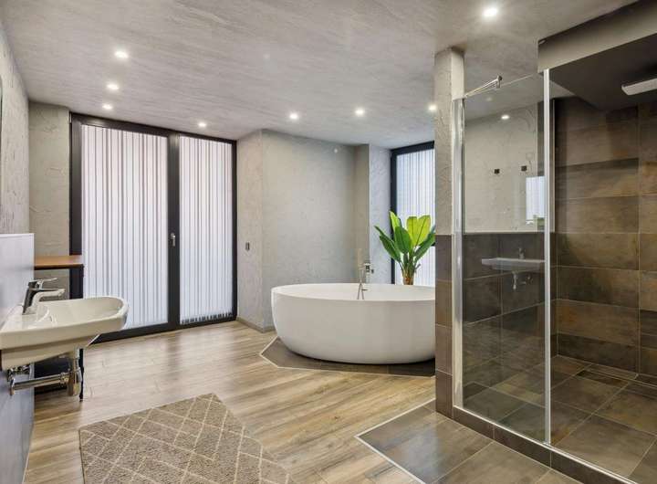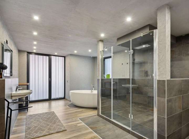 Die moderne Küche ist mit hochwertigen Markengeräten ausgestattet und bietet ambitionierten Hobbyköchen alles, was sie für kulinarische Erlebnisse benötigen. Im großzügigen Designer-Bad vereinen sich Eleganz und Funktionalität – mit einer luxuriösen Regendusche und einer freistehenden Badewanne, die zum Entspannen einlädt.
