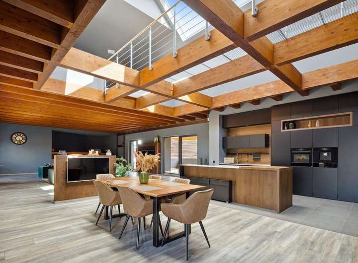 Das im Jahr 1970 erbaute Haus wurde bis 2024 umfassend saniert und modernisiert, um höchsten Ansprüchen an Wohnkomfort und Freizeitgestaltung gerecht zu werden. Das großzügige Loft-Design beeindruckt mit lichtdurchfluteten Räumen und einer offenen Wohnstruktur, die ein Gefühl von Weitläufigkeit und Freiheit schafft.