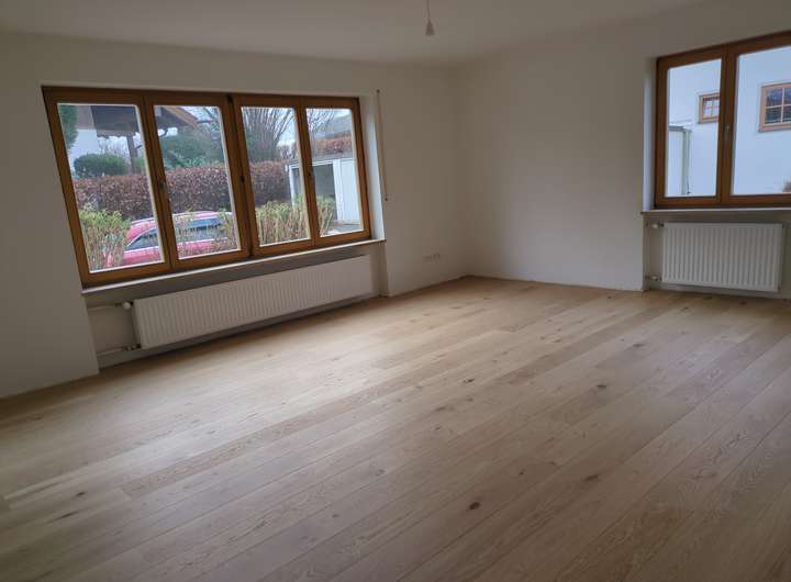 - Großes Wohnzimmer mit neuem Parkettboden und Zugang zur Terrasse ca. 23,44 m²