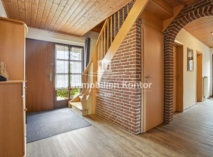 Sie suchen ein idyllisches, neues zu Hause? Dann sind Sie hier richtig! Dieses großzügige Einfamilienhaus liegt in einer ruhigen Wohnlage von Meerhausen und bietet mit seinem weitläufigen Garten eine grüne Idylle zum Entspannen und Genießen. Zahlreiche liebevoll gepflegte Pflanzen und ein alter, gewachsener Baumbestand verwandeln den Garten in eine wahre Wohlfühloase. Die im Jahr 1991 in solider Massivbauweise mit Satteldach errichtete Immobilie wurde mit viel Liebe zum Detail gebaut. Das Einfamilienhaus überzeugt mit zeitloser Architektur und einem top gepflegten Zustand – perfekt für anspruchsvolle Käufer. In ruhiger Lage empfängt Sie dieses Haus mit offenen Armen – ein Ort zum Ankommen, Wohlfühlen und Bleiben. Das Herzstück des Hauses ist der großzügige, beheizte Wintergarten, der viel Licht einfängt und einen herrlichen Blick ins Grüne bietet. Die Wohnküche mit Essbereich schafft den idealen Rahmen für genussvolle Kochabende mit Familie und Freunden. Die Kunststofffenster sind Isolierverglast und mit Jalousien ausgestattet. Die Beheizung des Objekts erfolgt über eine Gas-Zentralheizung. Im Jahr 2001 wurde die Wohnfläche durch einen Anbau um zusätzliche 30,5qm erweitert – perfekt geeignet als Home-Office oder vielseitig nutzbarer Raum. Eine Immobilie für Menschen die Wohnqualität mit Lebensqualität verbinden und dieses besondere Immobilienangebot zu