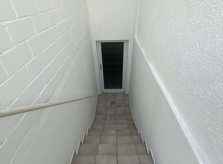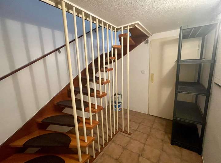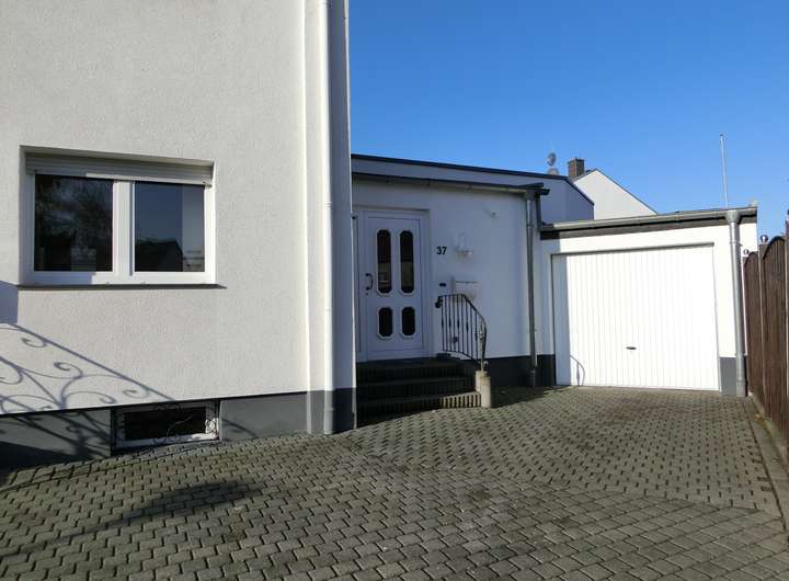 Die Garage mit elektrischem Torantrieb ist praktischerweise direkt von der Wohnung aus zugänglich. Weiterhin gehören zwei Kellerräume zu dieser Wohnung, die über eine überdachte Treppe vom Garten aus erreichbar sind.