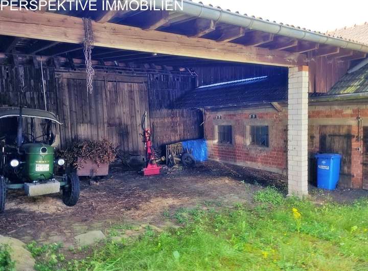 Besonders praktisch: Ein Durchgang verbindet das Wohnhaus mit einer kleineren Scheune, die sich ebenfalls zu Wohn- oder Nutzflächen umbauen lässt - ideal für kreative Gestaltungsideen.