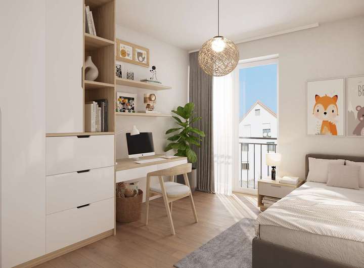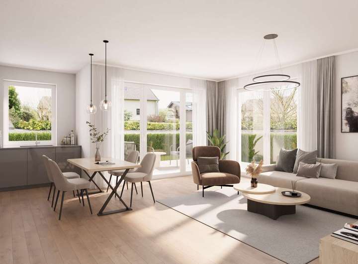 Das Gebäude beeindruckt mit klaren Linien, einer eleganten Formensprache und großzügigen Fensterflächen, die helle, lichtdurchflutete Räume schaffen und eine angenehme Wohnatmosphäre garantieren. Die massive Bauweise in Kombination mit dem energieeffizienten KfW-40 Standard sorgt für exzellente Wärmedämmung und hervorragenden Schallschutz – für ein Maximum an Wohnqualität und Nachhaltigkeit.
