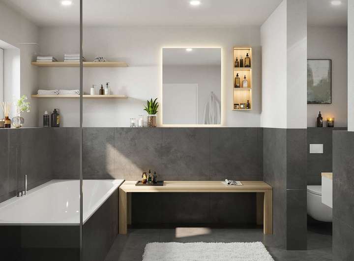• Modernen Bädern mit bodengleichen Duschen, Marken-Sanitär von