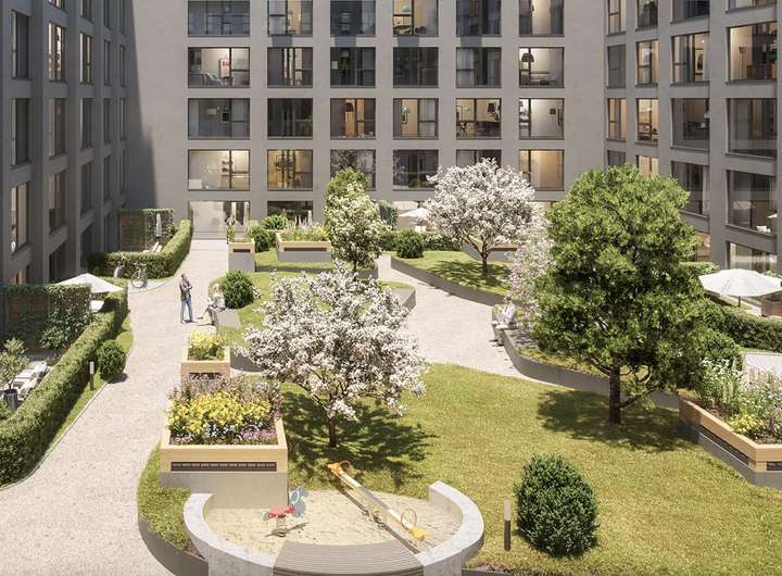 Das Projekt besteht aus sechs Hauseingängen mit jeweils eigenen Treppenhäusern und Aufzügen.