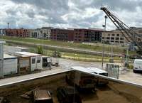Die nahegelegen Straßenbahn verbindet den Zollhafen direkt mit dem Hauptbahnhof und der Universität.